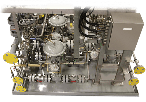 - Pumping skids with filter elements for straining/pre-filtering, polishing, and water absorption